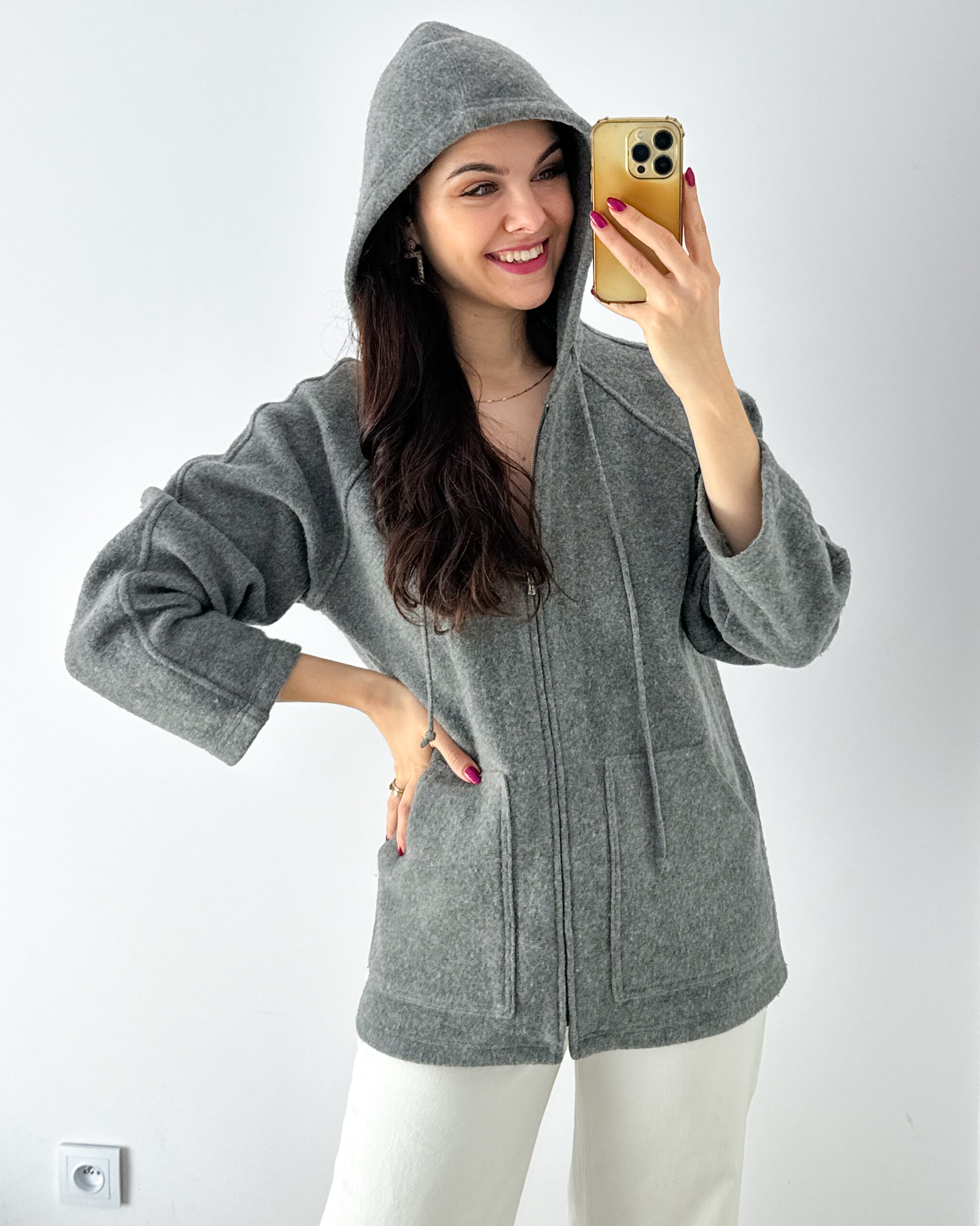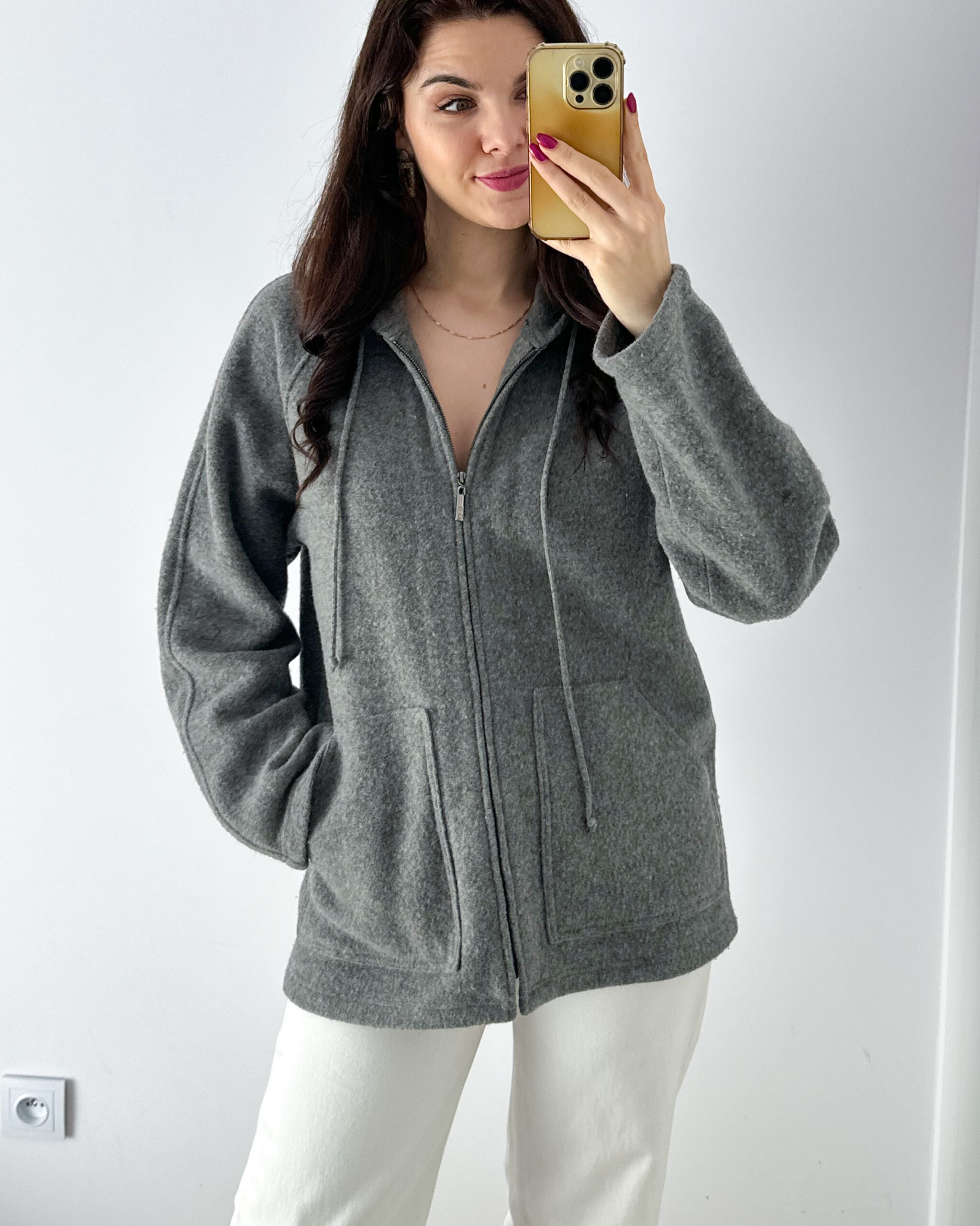 Uprany i zdezynfekowany. Gotowy do założenia. Osoba na zdjęciu ma 172 cm, rozmiar M
