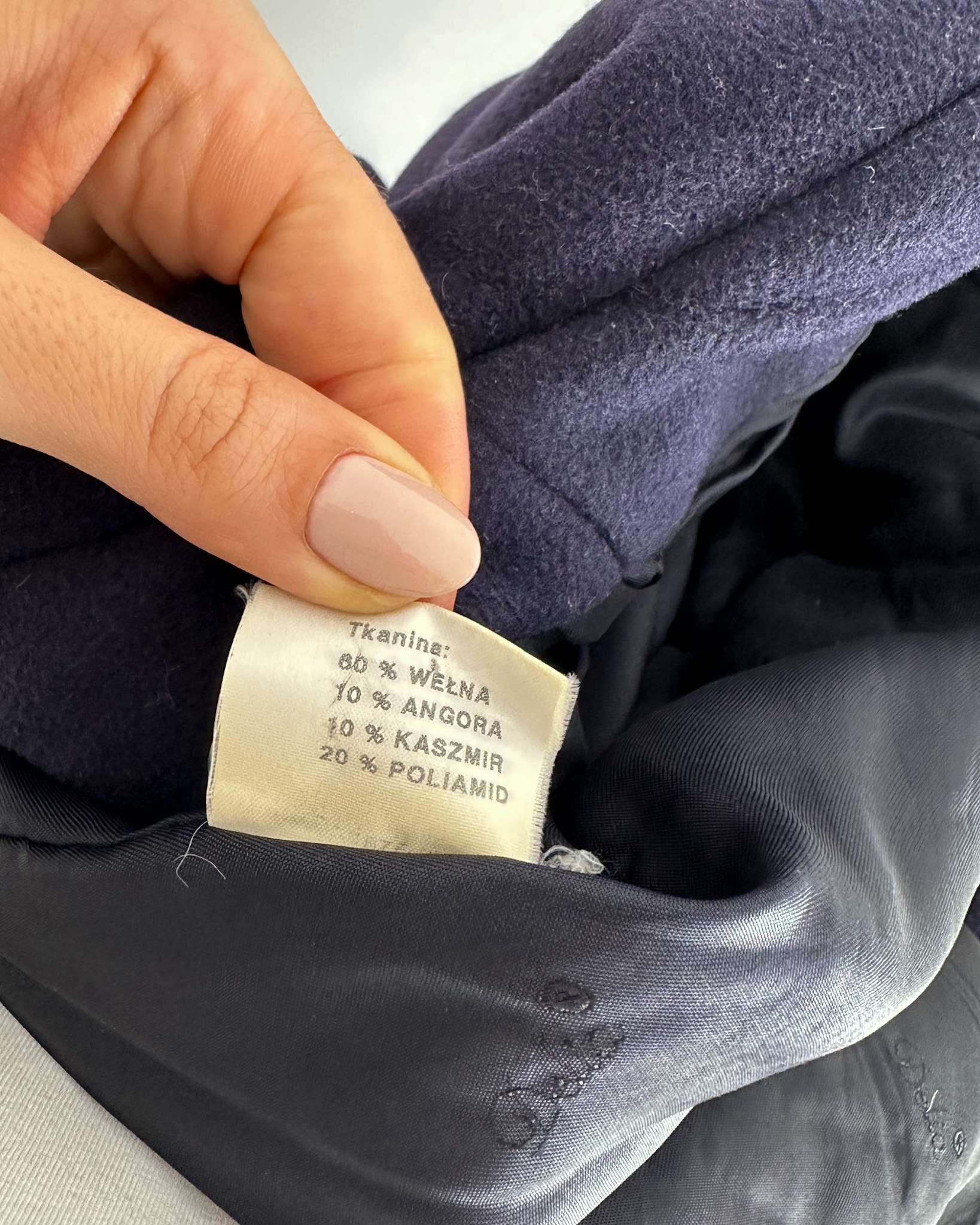 Uprany i zdezynfekowany. Gotowy do założenia. Granatowy